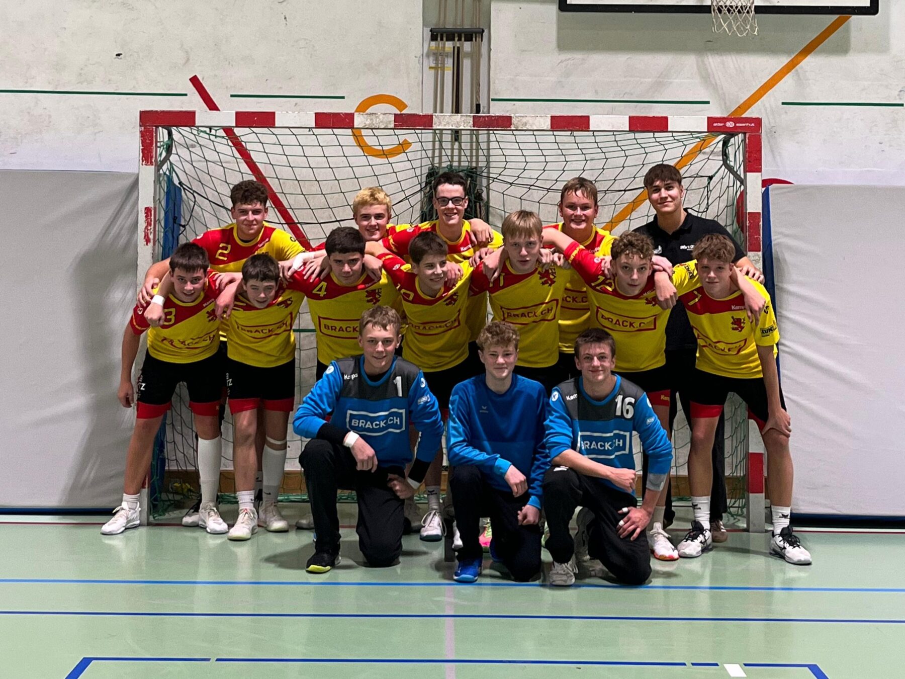 Hintere Reihe von links: Janosch Purtschert, Lou Bölsterli, Nico Schärli, Mirco Koller, Leon Schacher (Trainer)